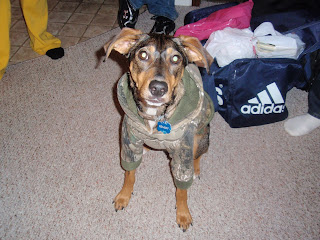 When I showed her which one I wanted to make for Remmy, she thought it was the coolest thing as well (great minds think a like right). However, Matt (Lindsay's boyfriend) said that I could only make one for her if it was Realtree camouflage. So I am making a hooded sweatshirt for a dog that is reversible (little adaptation to the pattern); with camouflage on one side and green fleece on the other.